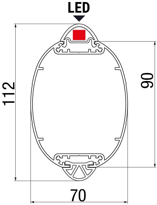 Witgelakte aluminium staaf, 4 meter lang, met LED afdekprofiel en schokbestendig rubber.